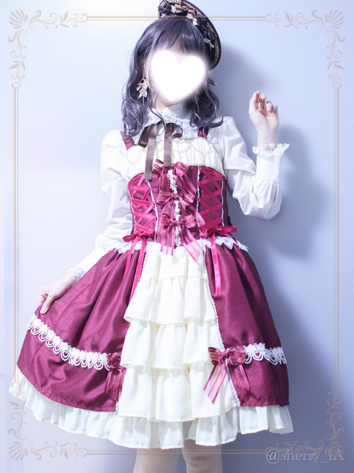 ずっとこのお洋服を着たかったのと、耳飾りも自分用作って使いたいって思ってたので念願かなったコーデとなりました♡♡♡♡